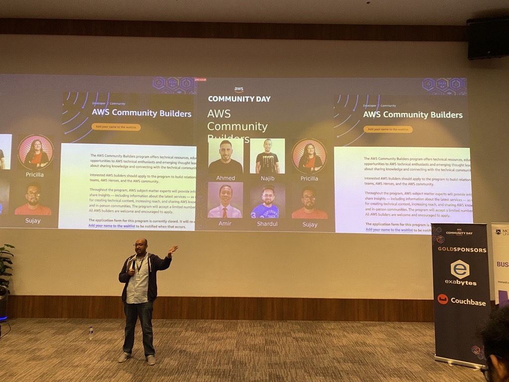 He discussed the AWS Community Builders programme, how to become one, and the benefits of becoming a member of the AWS CB Community. I was ecstatic when he took the six CBs from Malaysian and displayed them on the slides. I am the only female builder, which is rather sad. So it’s an opportunity for more Malaysian Women in Tech to join the Community.
