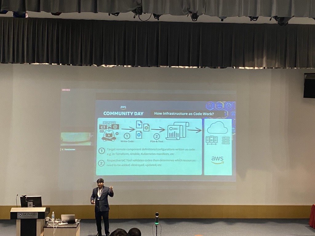 Sandip Das gave an insightful talk on Infrastructure as a Code using Terraform. He explained about CI/CD and the AWS services related to that (AWS Code Commit, AWS Codebuild, AWS Codepipeline).