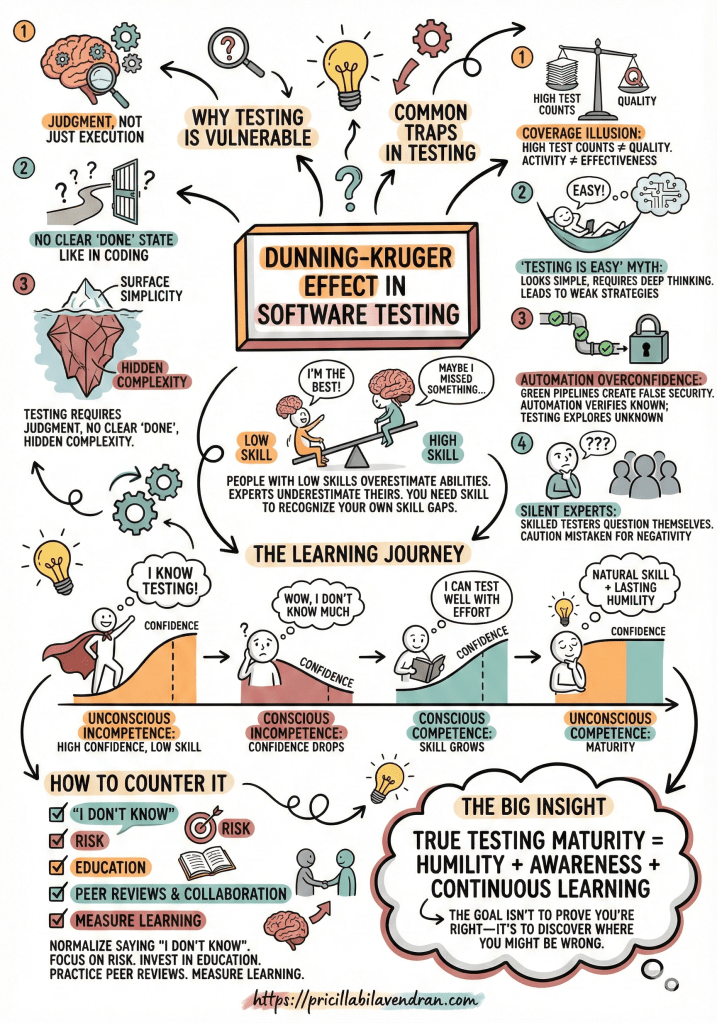 Behind every missed bug, false confidence in coverage, rushed release, or production incident, there is often not just a technical gap, but a cognitive one. One of the most powerful psychological patterns influencing software quality today is the Dunning–Kruger Effect, a phenomenon that quietly shapes decisions, team dynamics, and delivery outcomes.